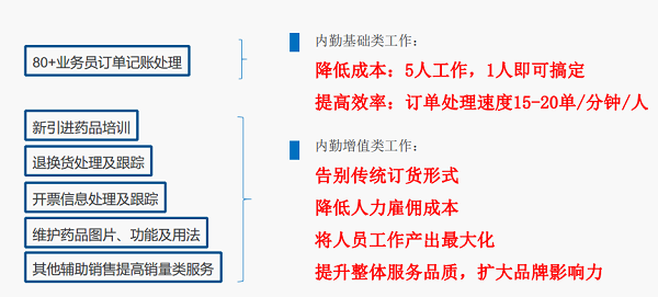80人業(yè)務(wù)團隊可由一名銷售內(nèi)勤負責(zé),同時將內(nèi)勤的開單工作轉(zhuǎn)化為銷售服務(wù)類工作,降低人員成本同時,可提升整體服務(wù)品質(zhì),擴大企業(yè)品牌影響力。
